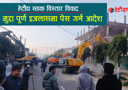 बागमती प्रदेशका पुर्व मुख्यमन्त्री डोरमणि पौडेलले सडक विस्तार हुँदा सबैभन्दा पहिले आफ्नो घर भत्काउने बताएका छन् । हेटौंडाखबर संग कुराकानी गर्दै उनले केहिले आफुलाई विकास विरोधी भनेपनि सडक विस्तारका बेला सुरुमा आफ्नो घर भत्काउन लगाउने बताए । पौडेललाई हेटौंडामा २५ मिटर सडक विस्तार हुँदा आफ्नो घर भत्किने डरले बजार भत्काउन नखोजेको आरोप लाग्दै आएको छ […]