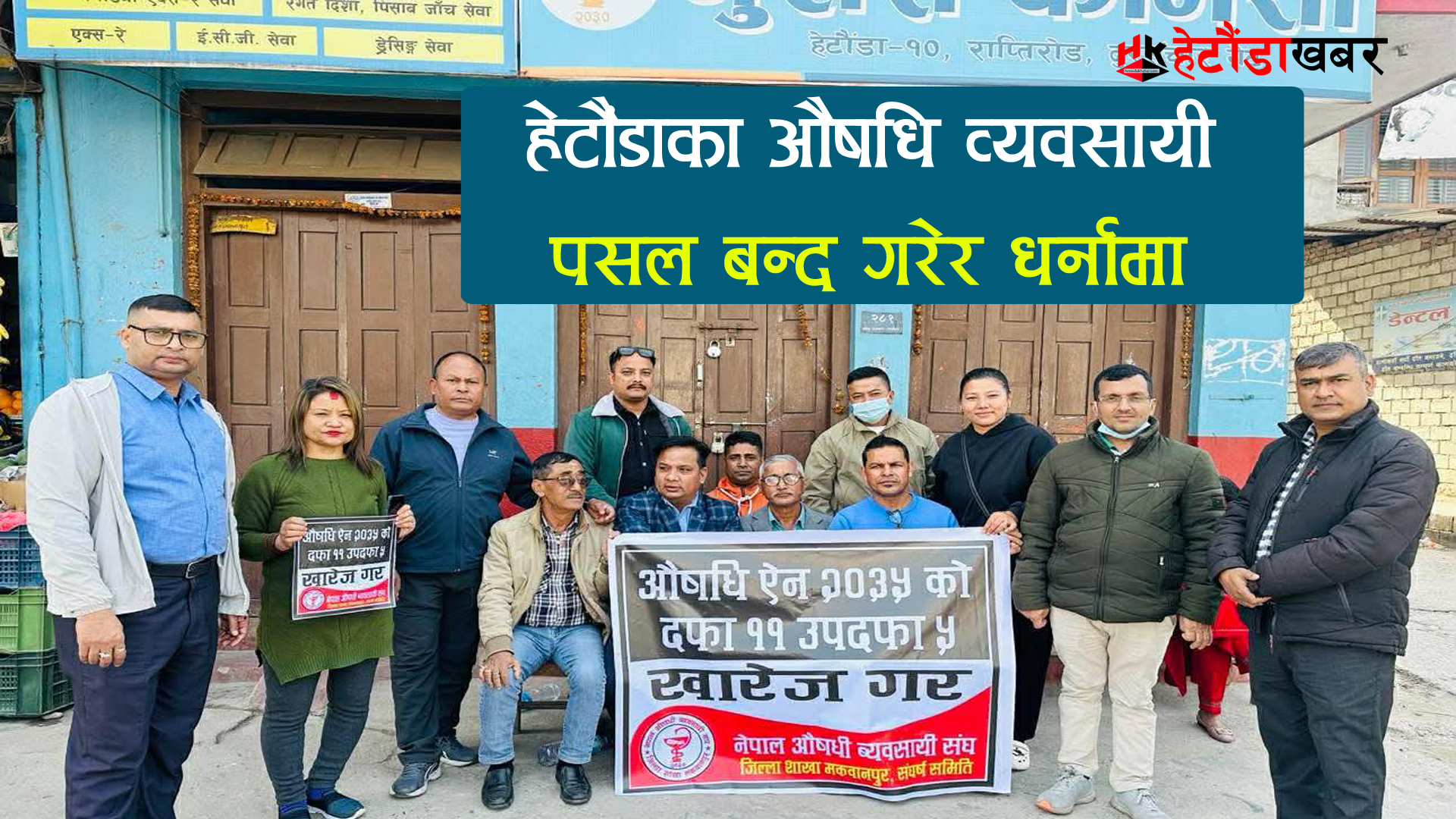 हेटौंडाका औषधि व्यवसायीहरु पसल बन्द गरेर आन्दोलनमा उत्रिएका छन् ।